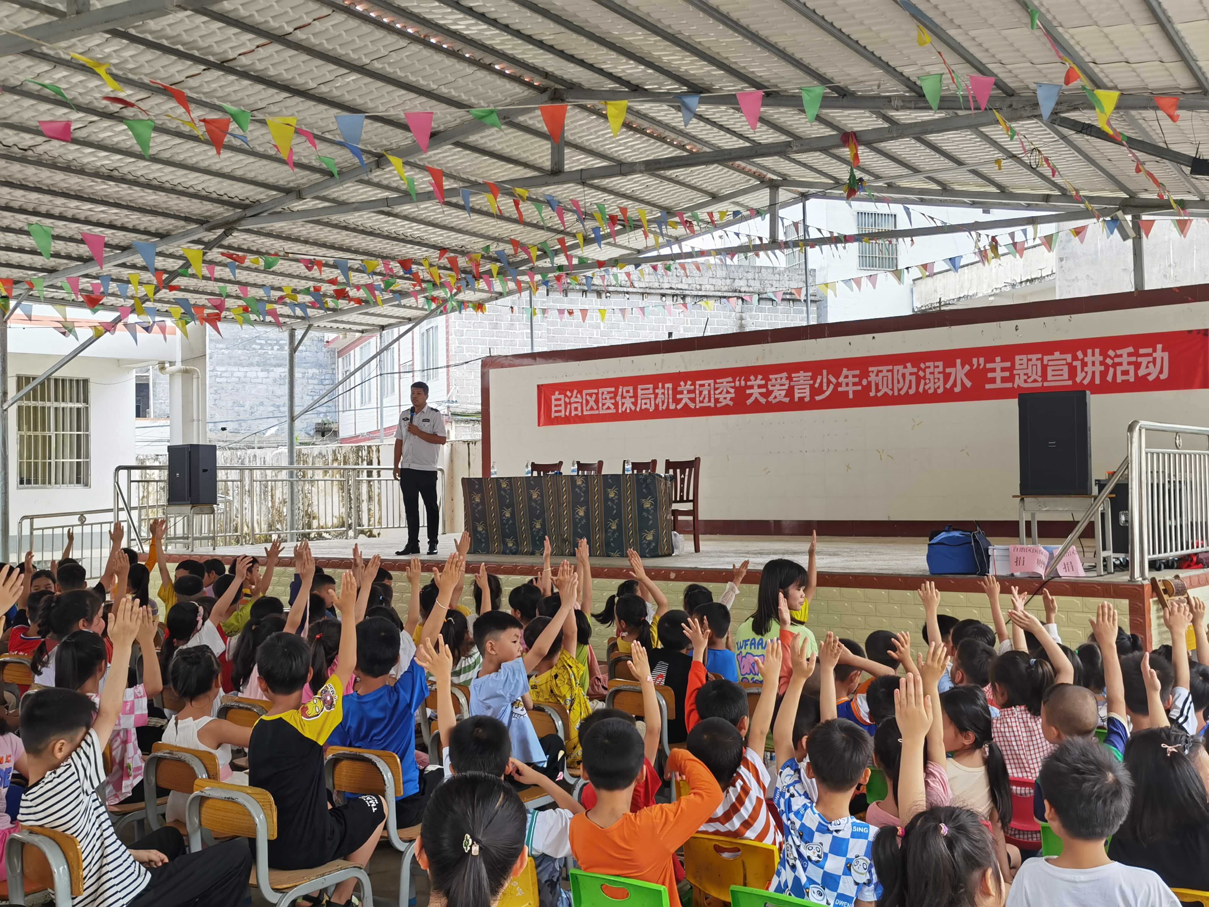 图为医保局机关团委在羊山小学开展“关爱青少年·预防溺水”主题宣讲活动现场
