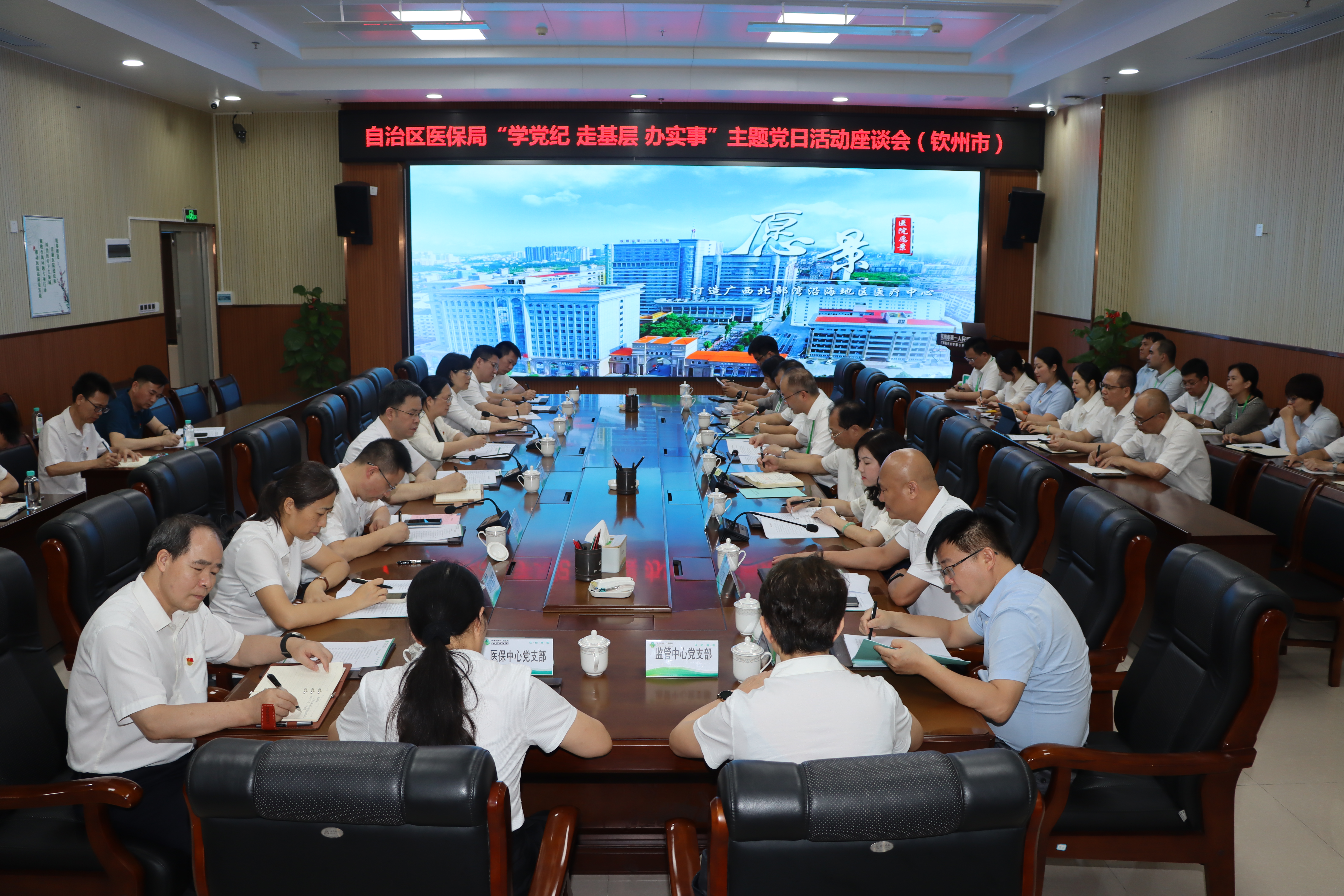 图为与钦州市医保局、定点医疗机构代表召开座谈会