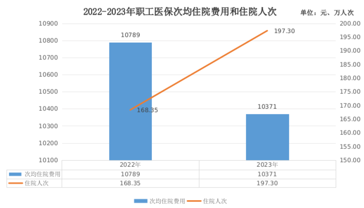 2023年,职工医保参保人员住院率26.92%,其中,在职职工住院率为16.05%,退休人员住院率为58.03%。次均住院费用为10371元,其中,在三级、二级、一级及以下医疗机构(含未定级)的次均住院费用分别为12835元、6443元、2796元。次均住院床日8.3天。