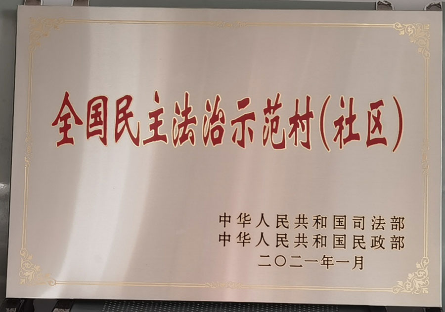 图为羊山村获评“全国民主法治示范村(社区)”荣誉称号
