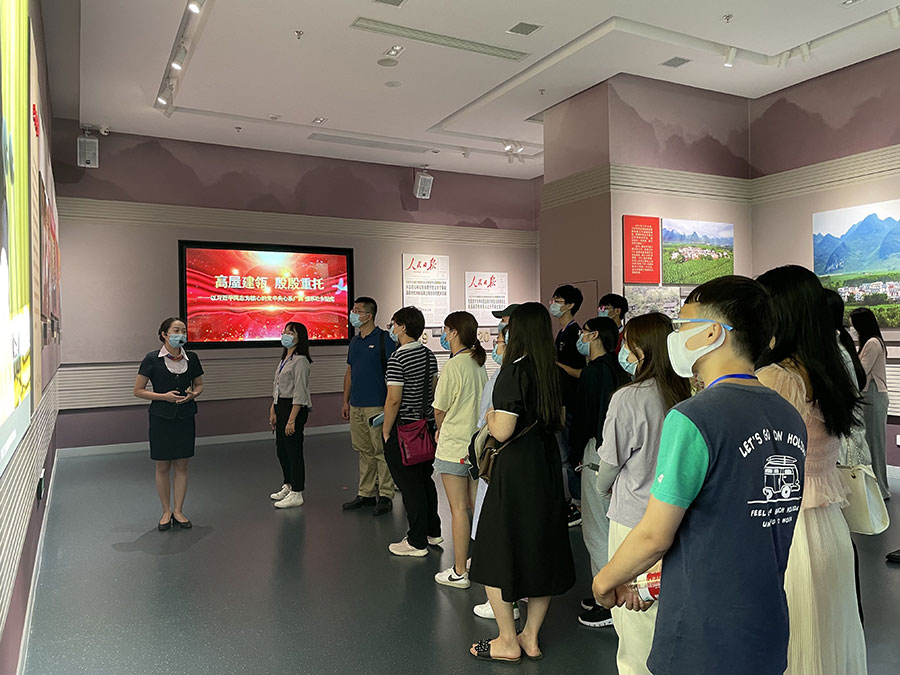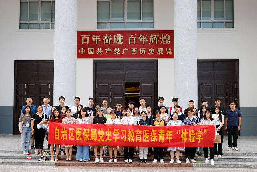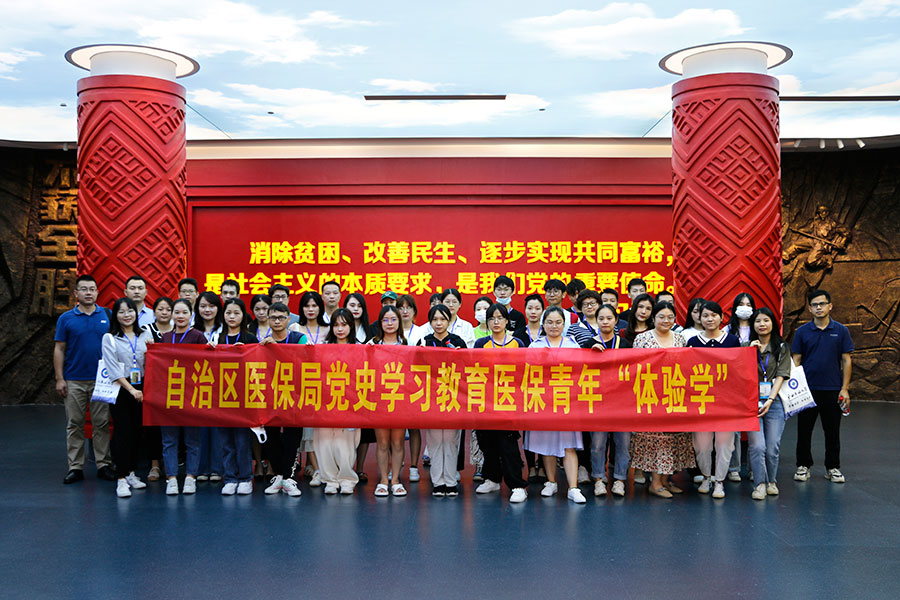 为进一步深入学习贯彻落实习近平总书记视察广西时的重要讲话和重要指示精神,推动党史学习教育走深走实,大力弘扬脱贫攻坚精神,8月26日,做爱视频 组织50名青年干部,前往广西展览馆参观广西脱贫攻坚成就展, 开展党史学习教育医保青年“体验学”活动。