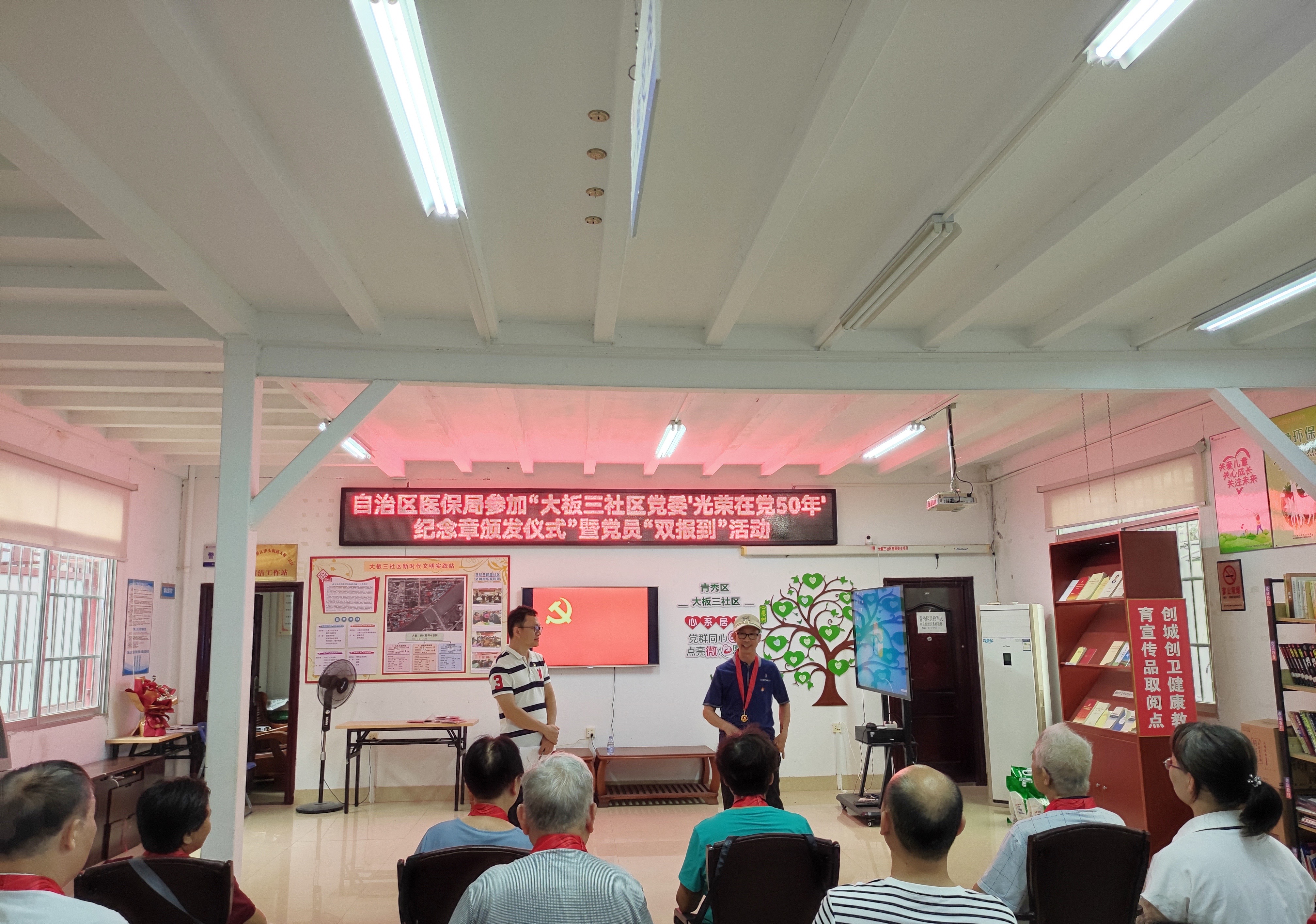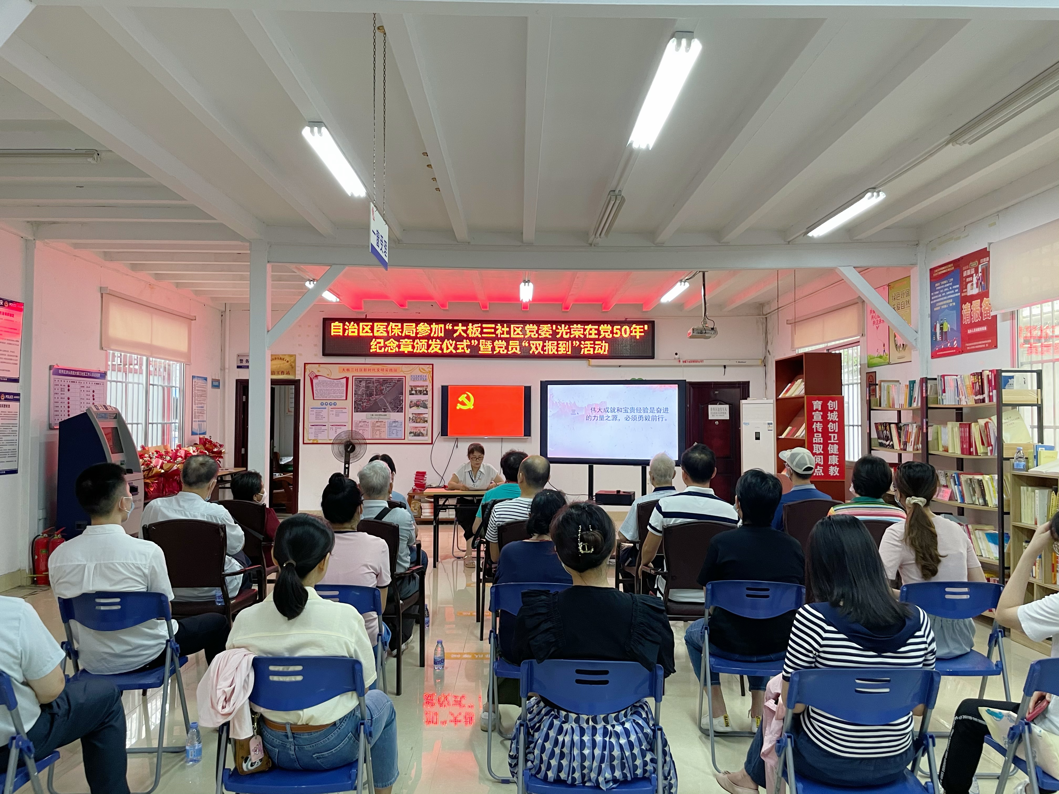 为强化基层党建工作互联互动,不断增强党支部凝聚力,实现与社区党组织共驻共建共融。6月30日上午,做爱视频 党员到大板三社区开展党员“双报到”活动,参加社区党委‘光荣在党50年’纪念章颁发仪式等活动。