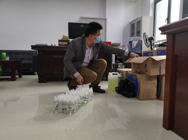 严志海同志在为贺州医保部门工作人员准备疫情防控物资