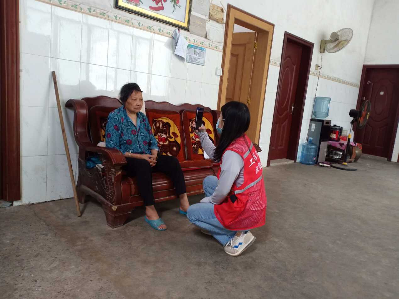 图为待遇保障处派驻羊山村党支部书记助理兼驻村工作队员庞雪娇入户开展工作