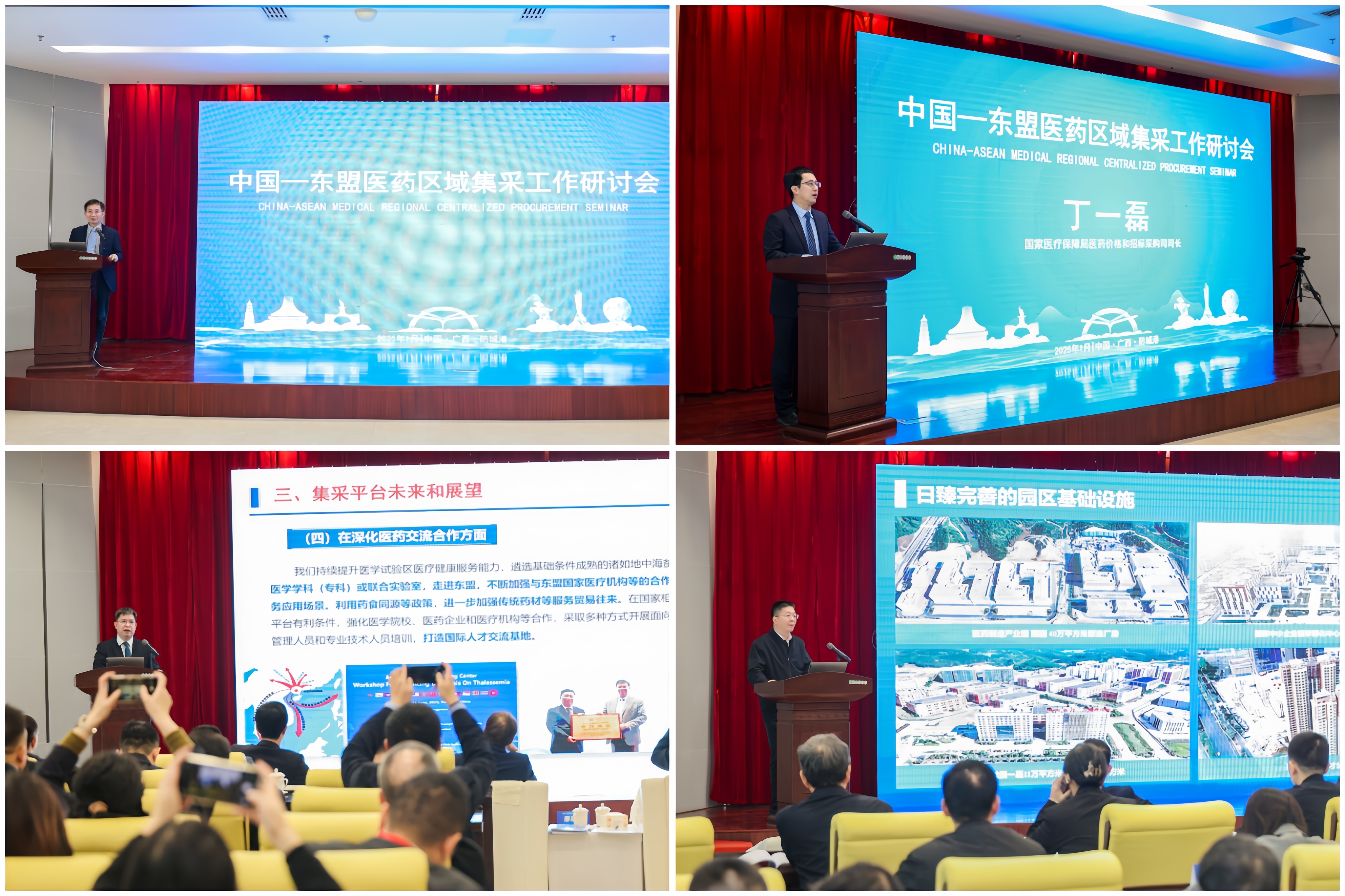 启动仪式结束后,在医学试验区随即召开中国—东盟医药区域集采工作研讨会,施子海、廖品琥分别作总结讲话,娄洪主持会议。国家医保局价格招采司司长丁一磊、防城港市副市长许伟、庞军作主旨发言,泰国、柬埔寨、马来西亚等东盟国家专家学者介绍本国家医疗保障制度和药品耗材采购情况,广西医科大学冯启明教授、中华医学会血液学分会全国常务委员赖永榕作有关工作情况介绍,与会知名国内外医药企业提出了工作建议。
